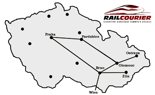 Diskrétní a zásilky menších rozměrů doručujeme mezi těmito městy. Centrála Brno. Doručení do ostatních měst dle dohody. Vyzvednutí a předání zásilky vždy na nebo v blízkosti vlakového nádraží.